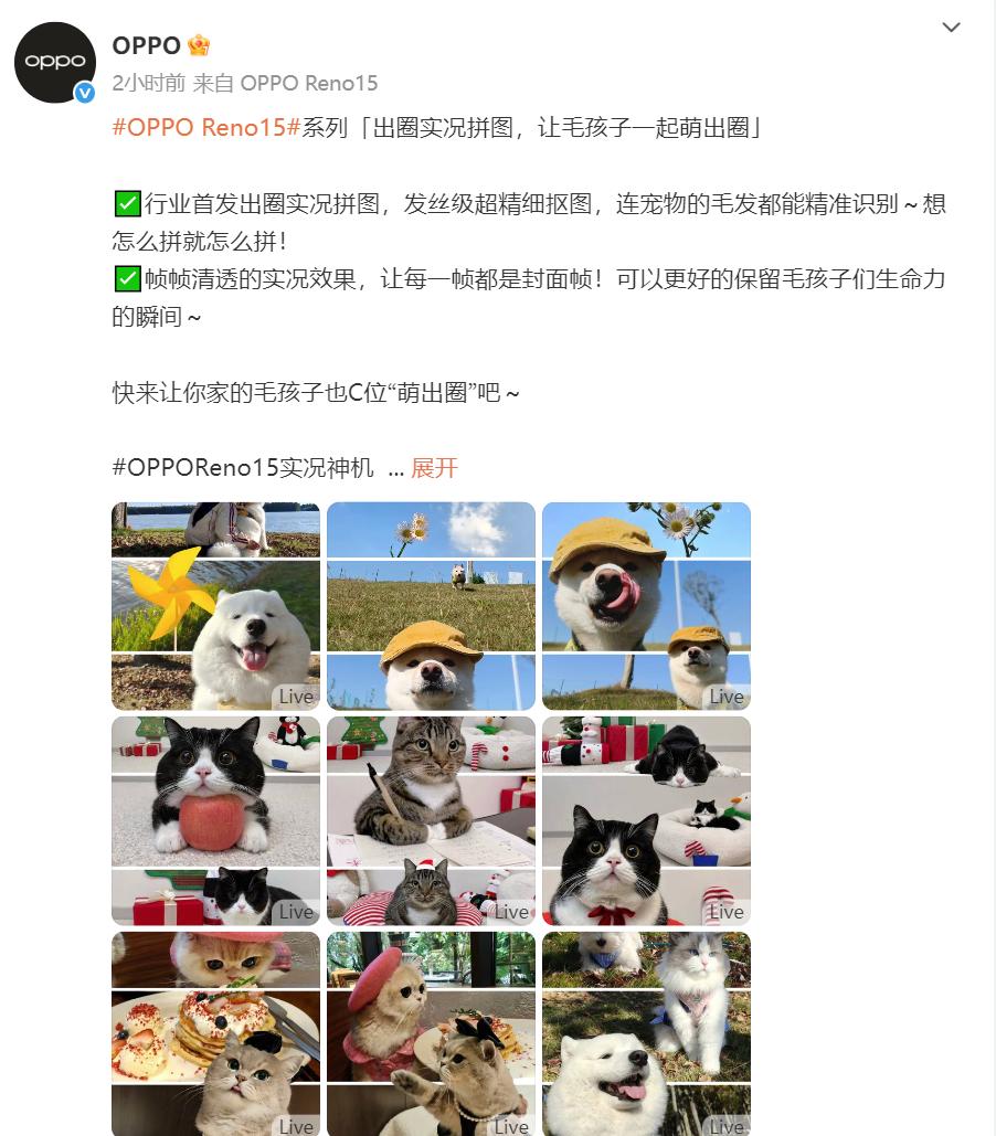 “#OPPO Reno15#系列「出圈实况拼图,让毛孩子一起萌出圈」