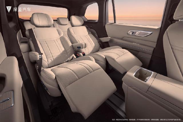 作为一款主打家庭出行的 SUV,深蓝 S09 在座椅设计上可谓是下足了功夫。全车座椅均支持通风、加热功能。第二排为双独立式座椅,每张座椅均带有独立式扶手并支持座椅按摩 / 通风 / 加热,扶手内侧设计有座椅多功能控制按键,支持 180 毫米横向滑动调节,还配备了腿托,能让乘客享受到如同头等舱般的舒适体验。此外,深蓝 S09 副驾侧第二排座位可提供小桌板,方便乘客办公或用餐;第二排还配备独立空调控制面板,可根据自己的需求调节温度。值得一提的是,深蓝 S09 还配备了可在第一排和第二排之间进行移动的中岛(带有 700 毫米滑轨),该中岛前部设计有手机无线充电面板,充电面板下方为隐藏式储物空间,并且该中岛前部和后部均配有杯架,中岛中部为车载冰箱。根据之前报道,该车载冰箱容积为 10 升,温控范围在零下 6 摄氏度至 50 摄氏度,无论是炎炎夏日的冷饮,还是寒冷冬日的热饮,都能轻松满足乘客的需求。当中岛台移动至第二排后,深蓝 S09 预计将具有左右贯通式前排地板,进一步提升了车内空间的灵活性和便利性。
