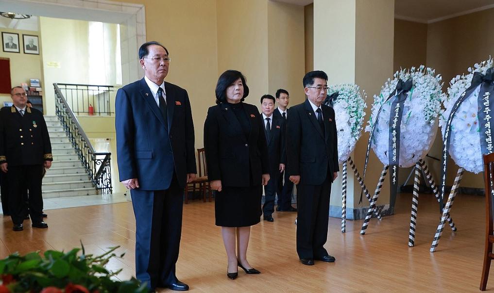 除了朝鲜领导人以外,朝方此次派出的吊唁规模也很庞大,多位政党高级官员跟着朝方相继前往俄罗斯大使馆,包括朝鲜外务相崔善姬、防长卢光哲等等。