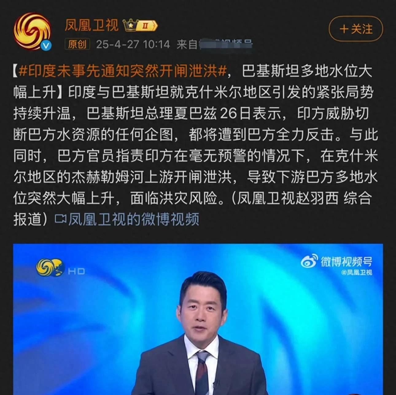 凤凰卫视报道称,印巴两国就克什米尔地区引发的紧张局势持续升温,巴基斯坦总理夏巴兹26日表示,印方威胁切断巴方水资源的任何企图,都将遭到巴方全力反击。与此同时,巴方官员指责印方在毫无预警的情况下,在克什米尔地区的杰赫勒姆河上游开闸泄洪,导致下游巴方多地水位突然大幅上升,面临洪灾风险。相关分析称,印度河现在已变成印度对付邻国的“水武器”。