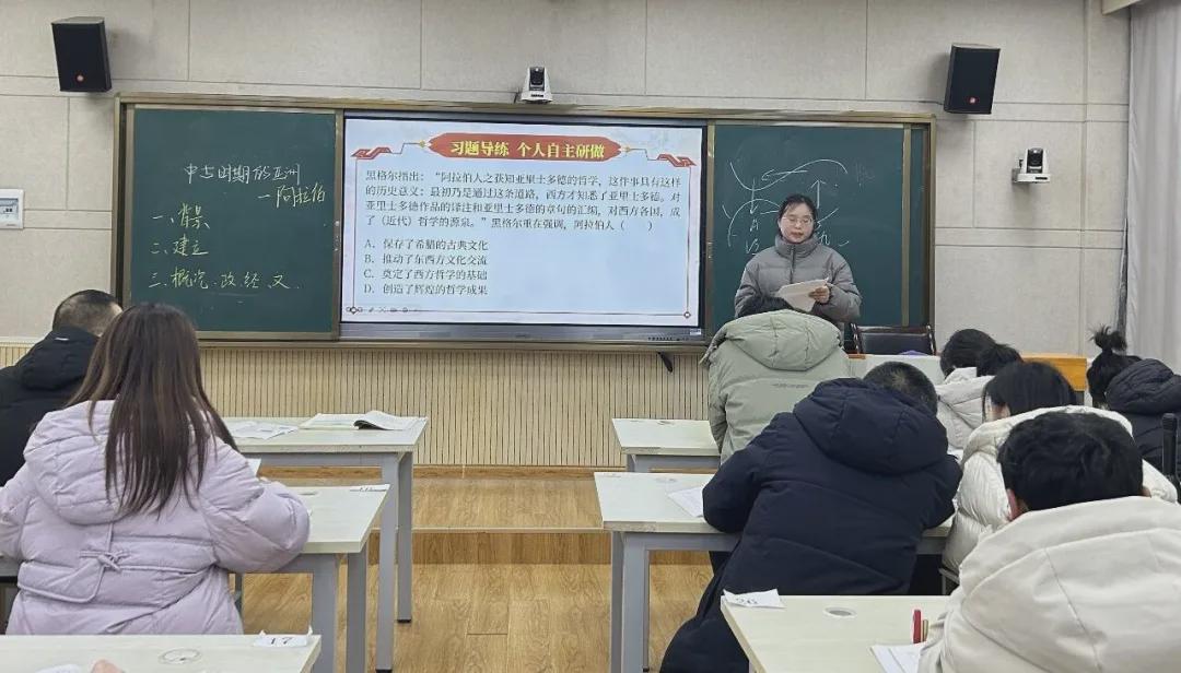 同课异构,异在教法、同在初心;切片教研,精在环节、深在思考。本次文综大教研为文综教师搭建了交流碰撞的平台,推动“三导四自主”教学模式落地。淮滨二高文科综合组将以此次活动为契机,以研促教、以评提质,深耕课堂,让教研之花绽放在育人沃土。(刘泽鲲 冯真真 李晶 张子晗)