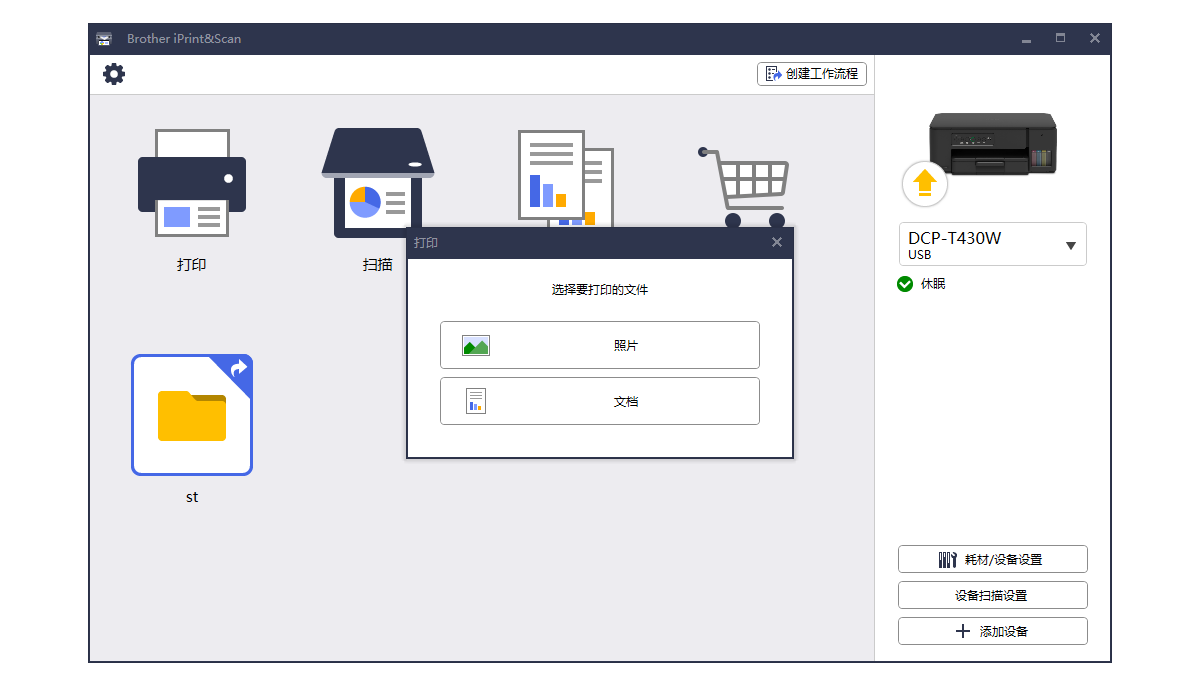 而兄弟DCP-T430W打印机更是卓越地满足了这一需求,它不仅提供了传统的有线连接方式,还进一步拓展了网络打印、无线直连、手机APP应用以及微信小程序等多种便捷途径,实现了随时随地的灵活打印。
