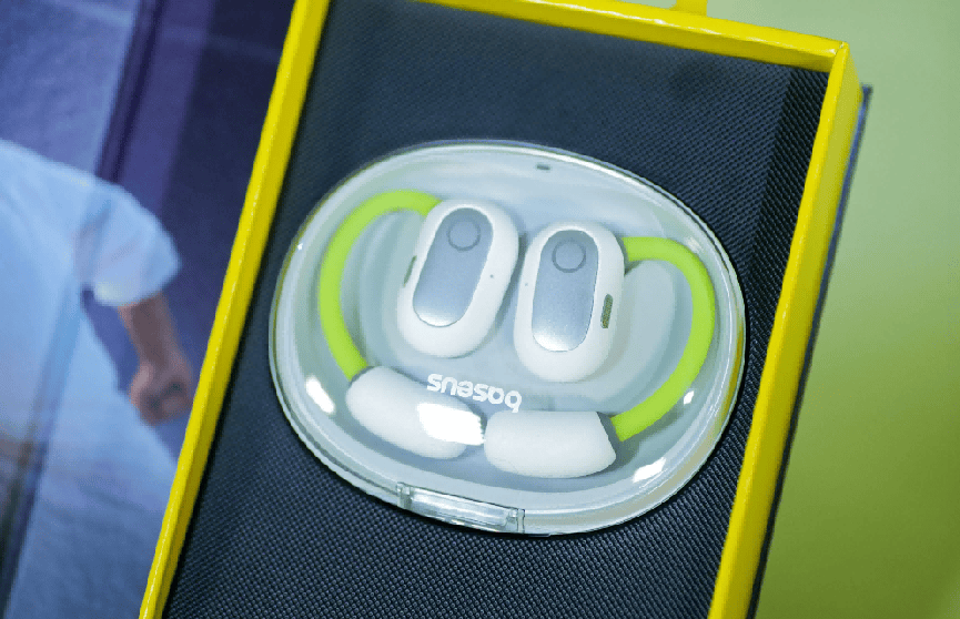 倍思Eli开放式耳机采用轻量化耳挂设计,从根本上避免了入耳式耳机可能带来的耳道压迫,佩戴感更为自然舒展。耳挂部分由钛合金记忆钢丝制成,兼具良好的结构强度与出色弹性,可灵活适应不同耳型,实现稳固佩戴且无夹耳不适。