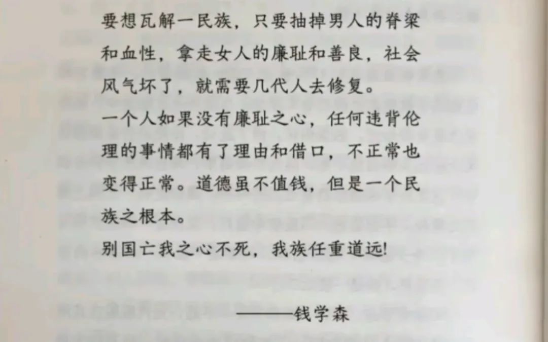 关于这一点,钱学森院士就看得非常清楚,他在美国生活了很多年时间,非常了解美国人的心理,他知道一旦美国人无法从正面战场击败我们,那就必然会从文化上下功夫,所以他在很早以前就提醒了我们所有人,他说:想要瓦解一个民族,只需要抽掉男人的脊梁和血性,拿走女人的善良和廉耻。