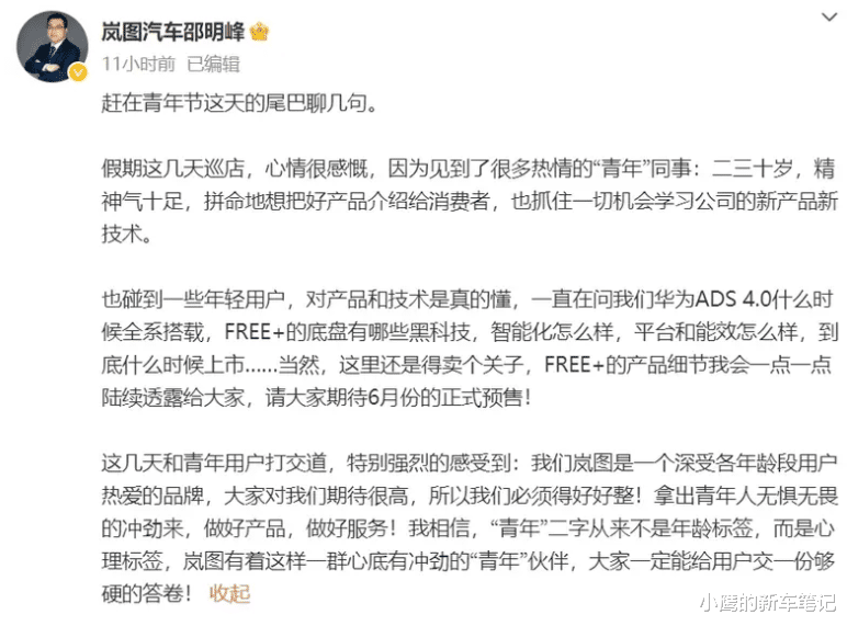 这也给岚图带来一些启示:既然品牌调性就是高端,那就一路高端到底,与华为进一步捆绑,把最新的华为技术应用在SUV领域。