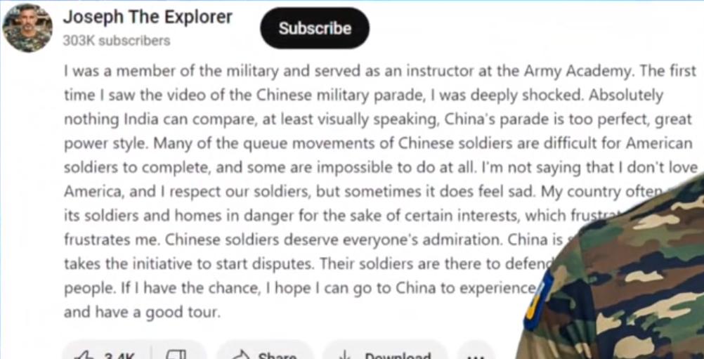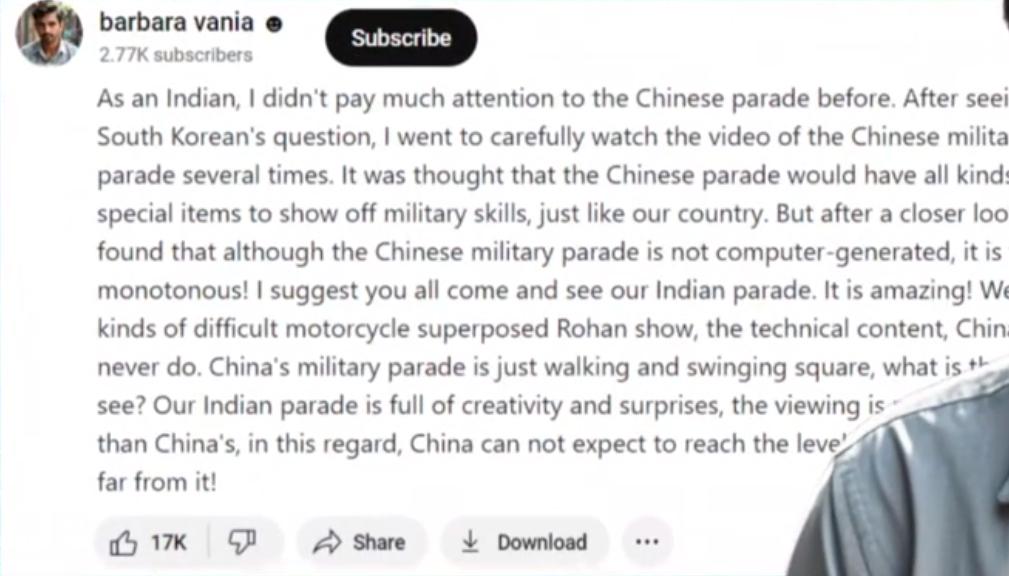 但当他第一次看到中国的阅兵视频时,还是被深深的震撼到了,那场面绝对不是印度能比的。