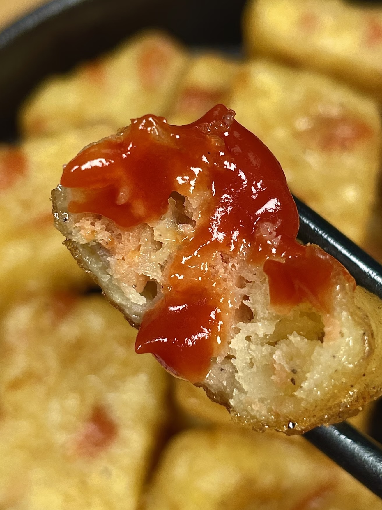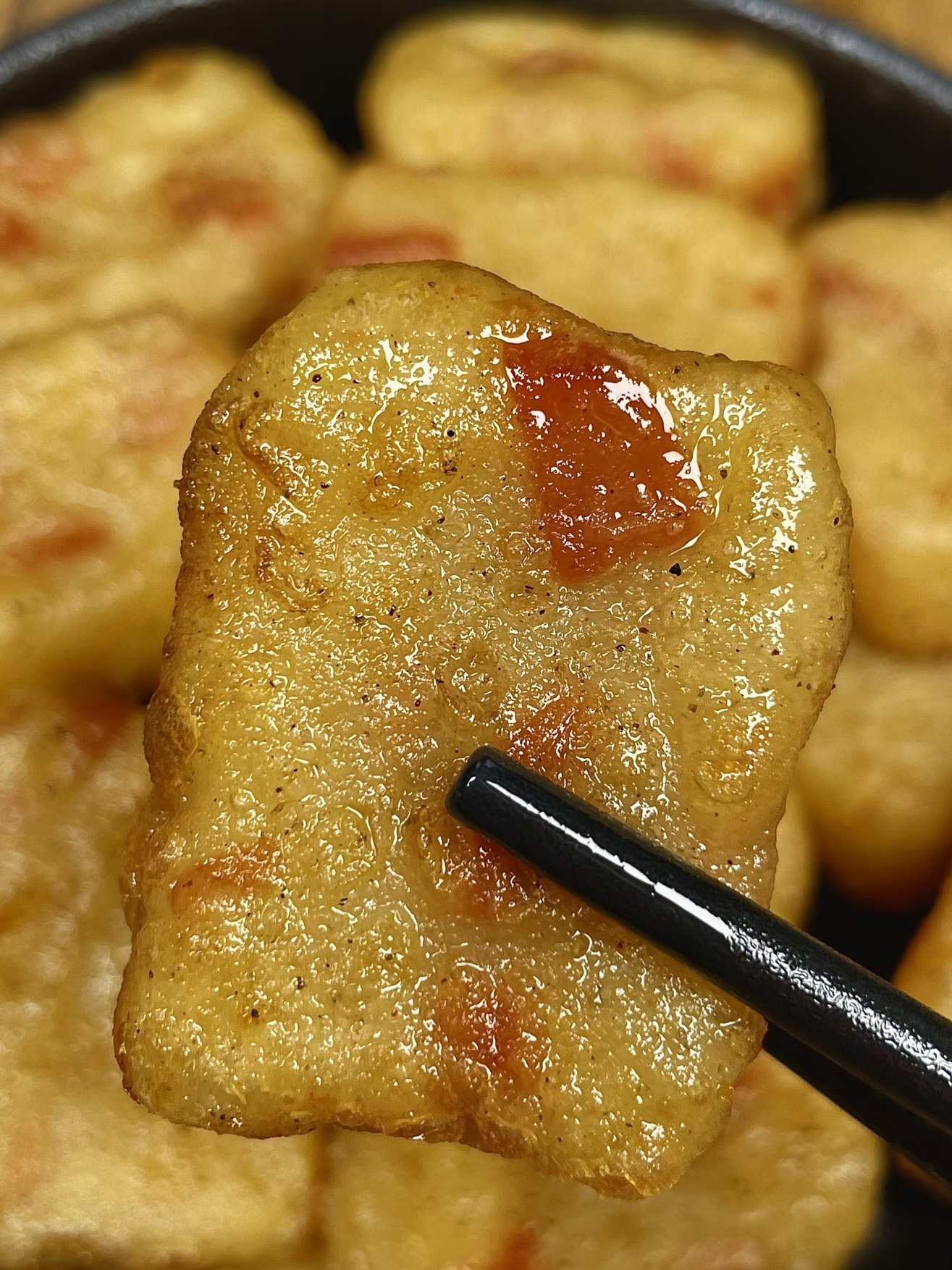 刚出锅的火腿土豆饼,色泽金黄,外皮酥脆,内里鲜嫩,每一口都是满满的幸福感。这道菜不仅美味,而且营养丰富,土豆富含膳食纤维和多种维生素,火腿提供了丰富的蛋白质,是一道健康又美味的家常小食。