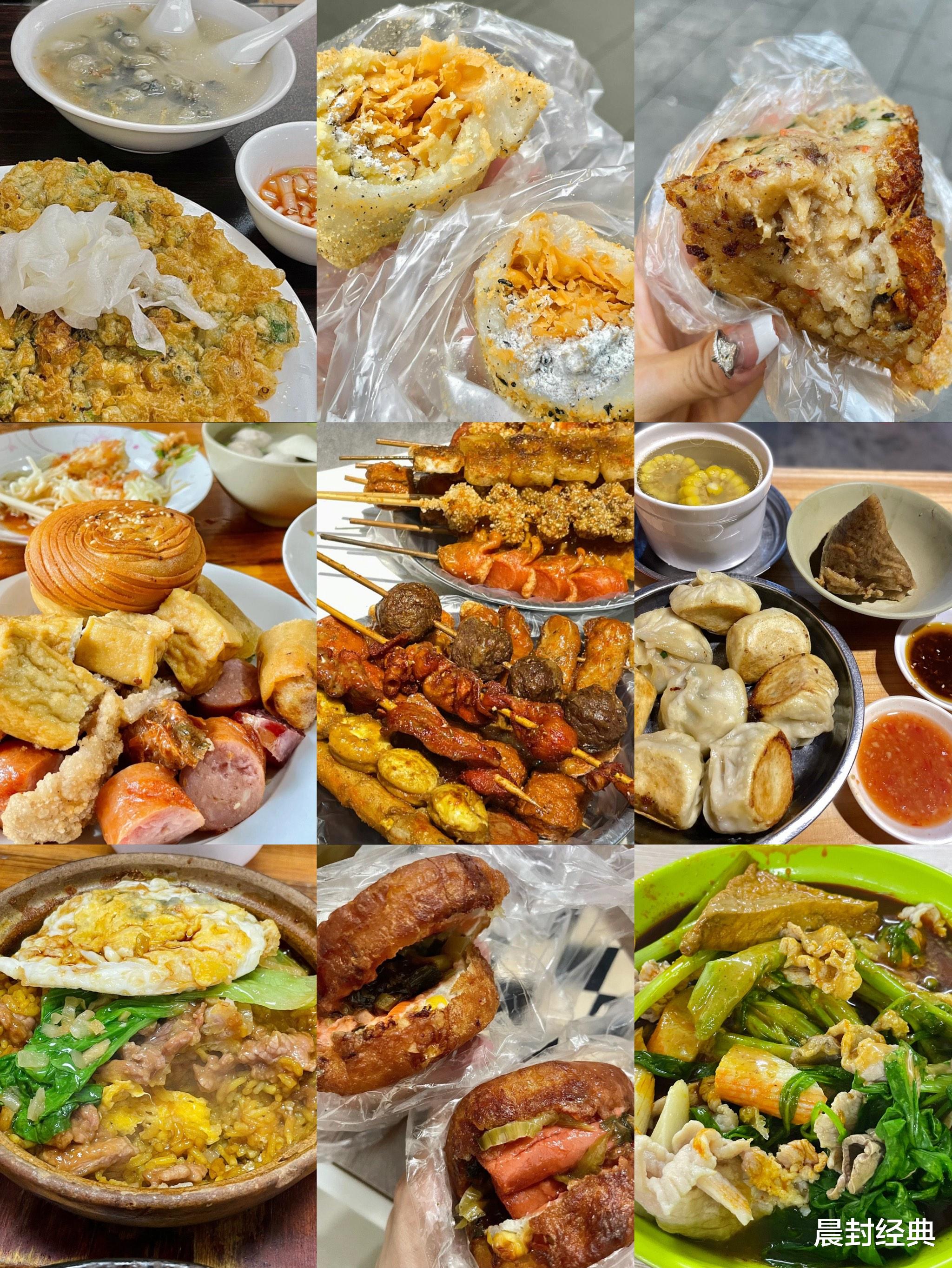 古早味三件套:建国蚵煎(15元脆皮海蛎煎)、松树干拌面(8元配五香卷)、晓文三角饼(3元香芋馅爆浆)。