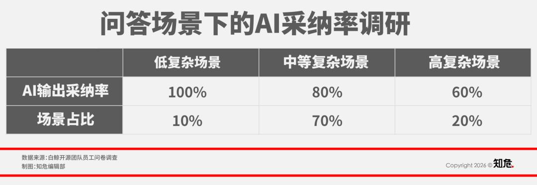 并且,目前关于 AI 输出采纳率的相关数据极少。