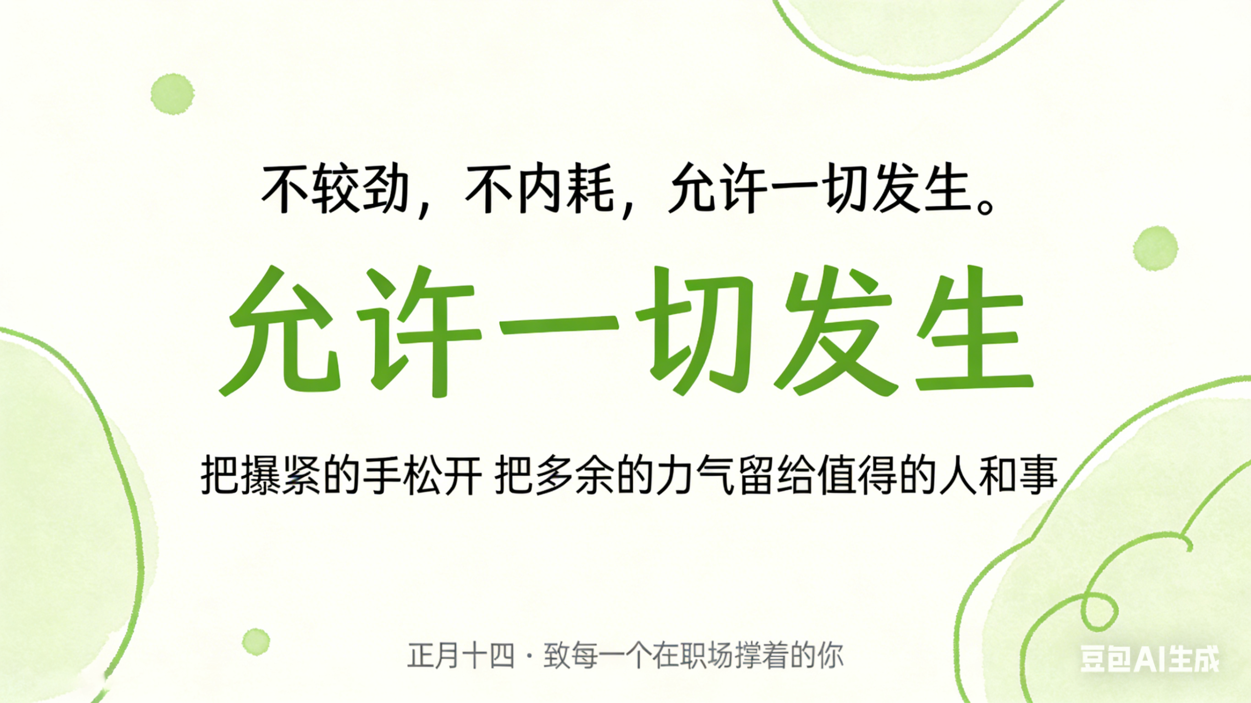 正月十四。办公室的绿萝还活着,工位上的灰尘擦干净了,咖啡机又开始排队。年过完了,班上了好几天。有人还没从假期里缓过来,有人已经开始焦虑今年的KPI,有人坐在会议室里,脑子里想的却是昨晚又没陪孩子吃上饭。如果你也觉得累,如果你也觉得这一年开局就有点喘不过气——我想和你说一句话:允许一切发生。---
