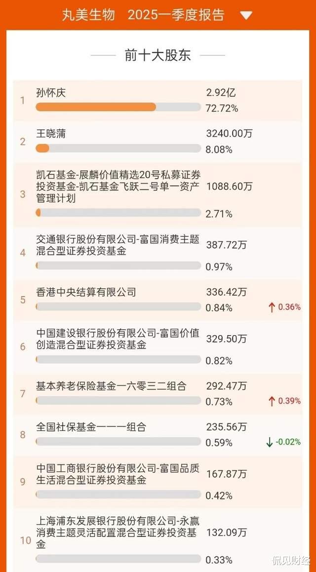 2024年,1家养老金现身丸美前十大流通股东,截至2024年年底,基本养老保险基金一六零三二组合本期持有丸美生物的股份137.48万股,占流通股比例0.34%,总持股增加至292.47万股,总持股占流通股比例为0.73%。