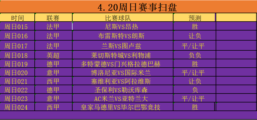 综合分析:勒沃库森上轮联赛遭遇平局,球队距离榜首的拜仁还有6分之差,在还有5场比赛的情况下,药厂仍有一丝希望卫冕冠军,本战面对本赛季整体表现糟糕的升班马圣保利,勒沃库森一定不会放过全取三分的机会。