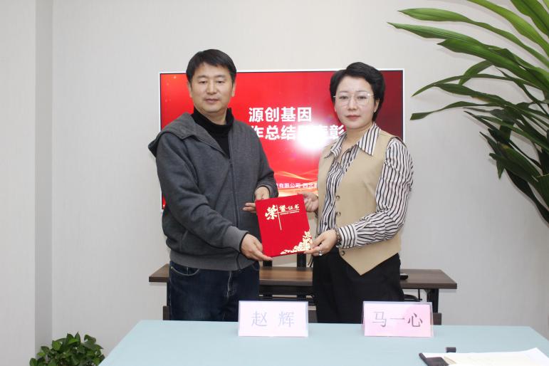 表彰环节中,赵辉博士为闫志强、马一心两位优秀同仁颁发荣誉证书,肯定他们在各自岗位上的突出贡献。赵博在讲话中强调,源创基因的发展离不开每一位员工的辛勤付出,希望全体同仁以他们为榜样,传承敬业精神、凝聚奋进力量,在新的征程上再创佳绩。