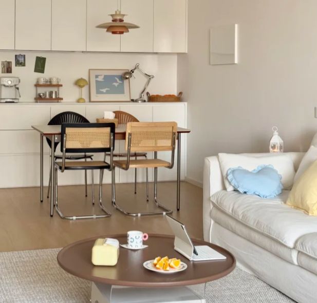 在素材的选择上,棉麻与实木的组合,是营造简约现代风温润感的灵魂。不妨试试一张线条利落的原木色餐桌,搭配几张素色棉麻坐垫的餐椅。实木的天然纹理是时间留下的画作,触感温润;而棉麻布料质地柔和,能吸收环境的杂音。午后,阳光透过亚麻窗帘会被筛成一层均匀的、毛茸茸的光晕,缓缓落在木桌面上,那种宁静而踏实的感觉,会让一顿简单的早餐也充满仪式感。