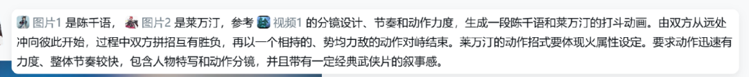 这是我写的提示词,视频1是陈千语干员叙事里,她和分身比剑的那一段。