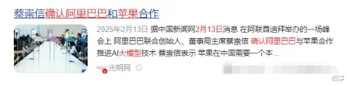 不仅如此,早在2月13日,阿里就已确认,苹果新机将接入阿里大模型,并推出专门适配中国用户的大模型。