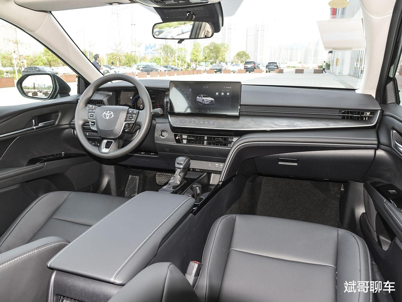 坐进车内,这代凯美瑞内饰总算开窍了!不再是老气横秋的样子。非对称中控台有点设计感,环抱式座舱感觉挺好。低配是7英寸仪表+10.25英寸中控屏,中高配直接双12.3英寸大屏走起,科技感强多了!电子挡把小巧精致,比老款那个顺眼太多,内饰这块儿进步明显!