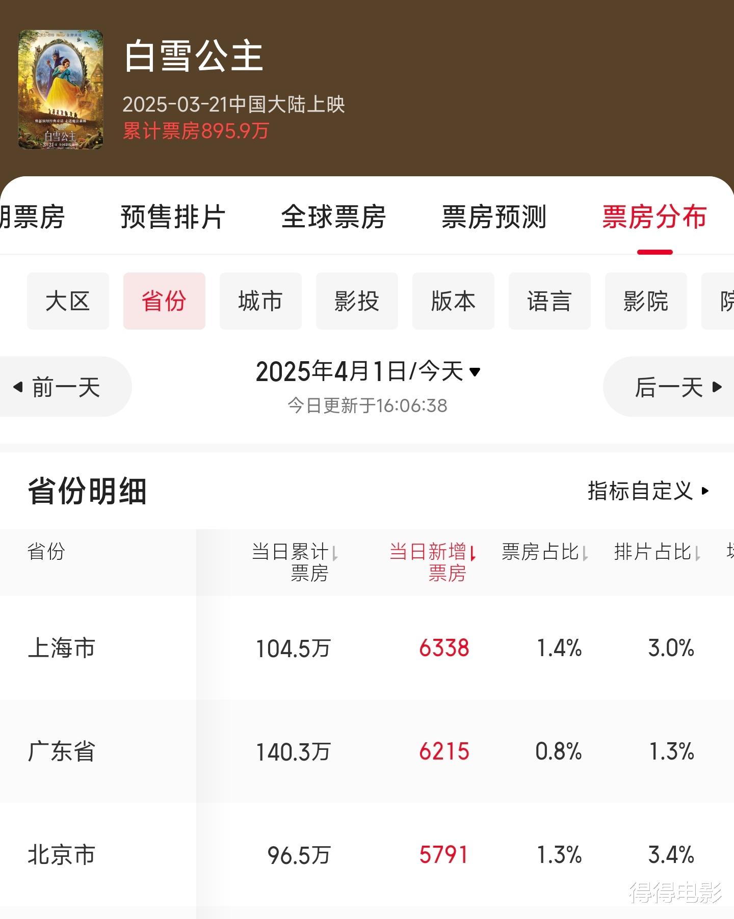 有意思的是,包括北美本土市场在内几乎都没人在乎《白雪公主》,反而这部电影在台湾省拿下了票房第一。