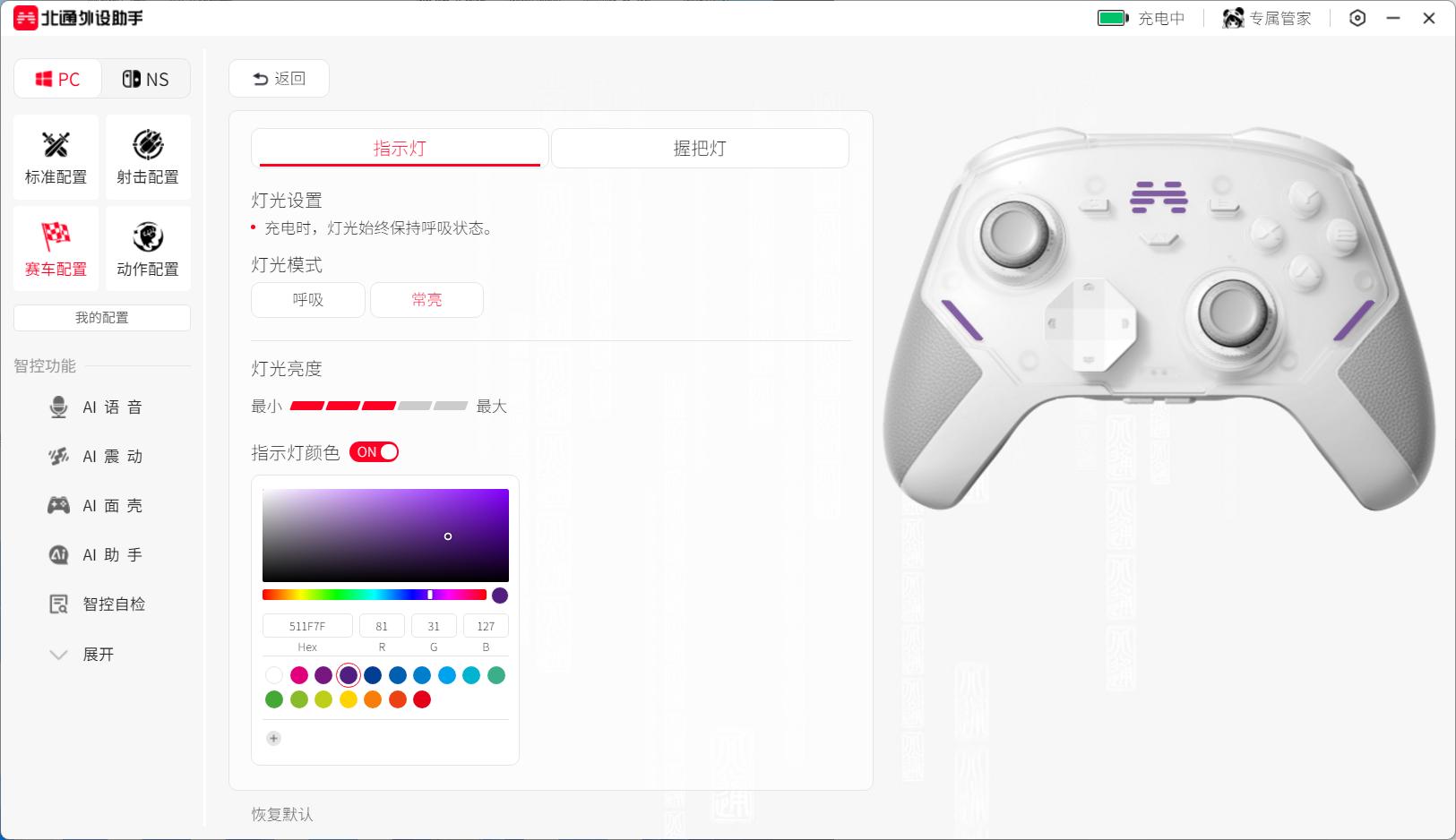 为彰显个性,软件内还支持自定义手柄指示灯与握把灯,可自由调节亮度与色彩。搭配可更换的磁吸面壳,实现外观百变,每一次组合都能带来全新的视觉体验,可玩性十足。