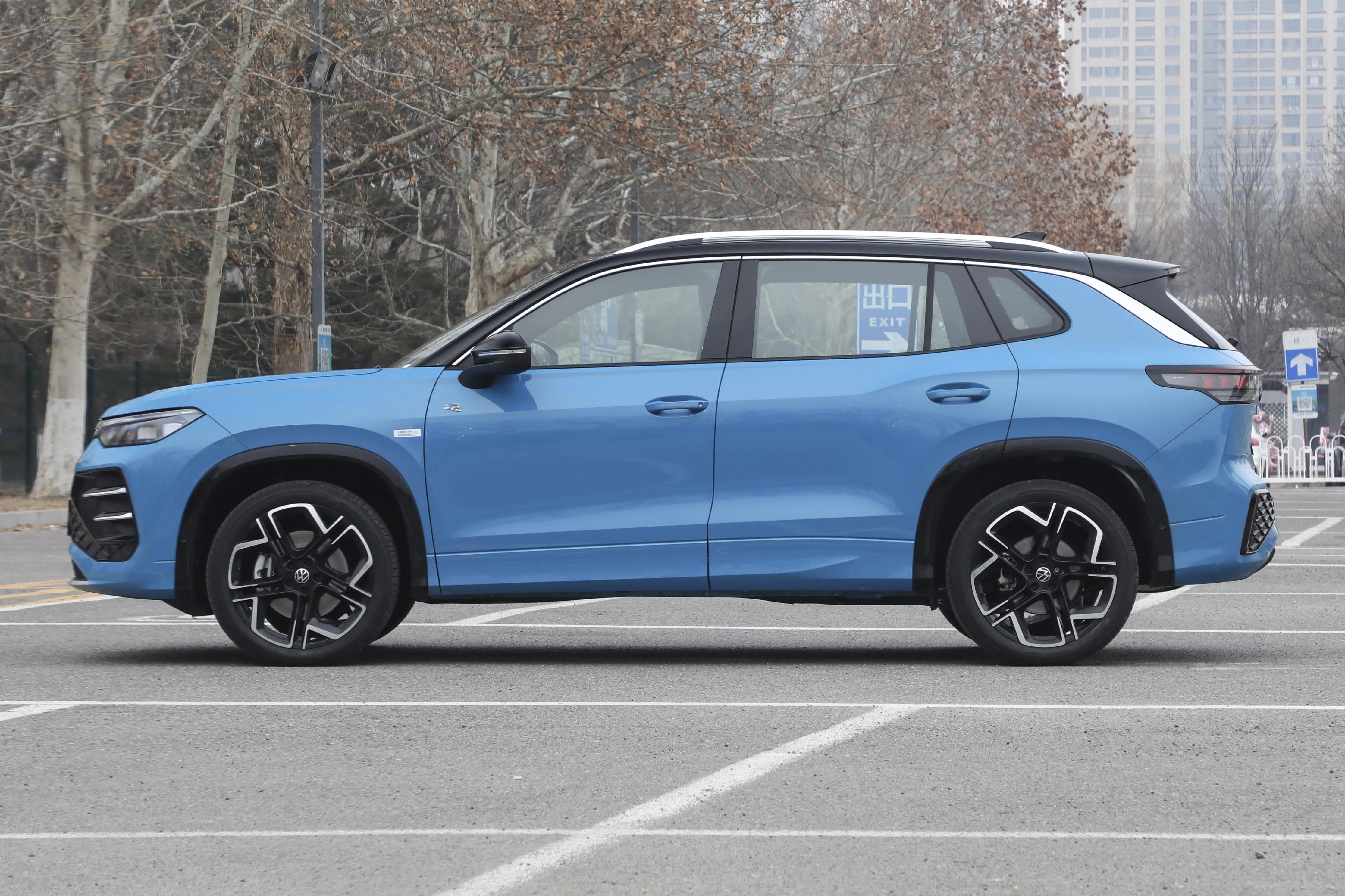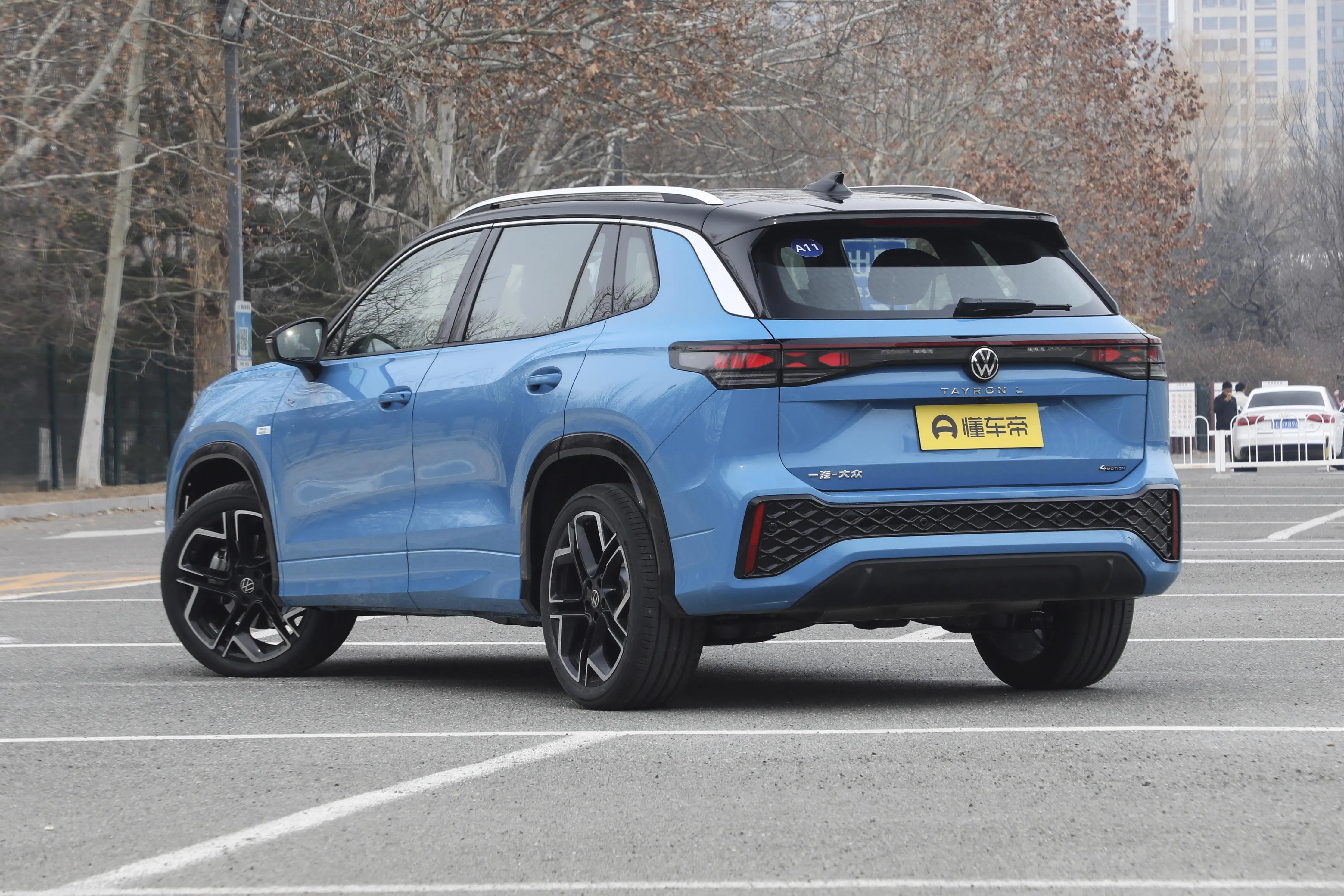 车身侧面线条流畅,上扬的立体肩线给人一种向前冲的动感。它还提供18英寸、19英寸以及20英寸三种不同尺寸的轮辋可以选择,大尺寸的轮毂搭配起来,整车看起来更霸气。再加上悬浮式车顶和撞色车身设计,时尚感爆棚,开在路上,你就是最靓的仔。车尾部分,换装全新的Surface LED 3D贯穿式尾灯是个亮点,内部经过黑化处理,点亮之后效果超酷炫,X形的光源很有辨识度,就算在很远的地方,也能一眼认出这是探岳L。底部的黑色装饰条和隐藏式排气,让车尾看起来更加简洁大方,整体风格很统一,精致感满满。车尾中央镶嵌有“TAYRON L”标识,更能增加车辆的辨识度。后保险杠造型是标准版和R-Line版的主要区别之一,R-Line版采用了更加动感的网格造型,并且拥有R标识,而标准版则相对较为简洁。