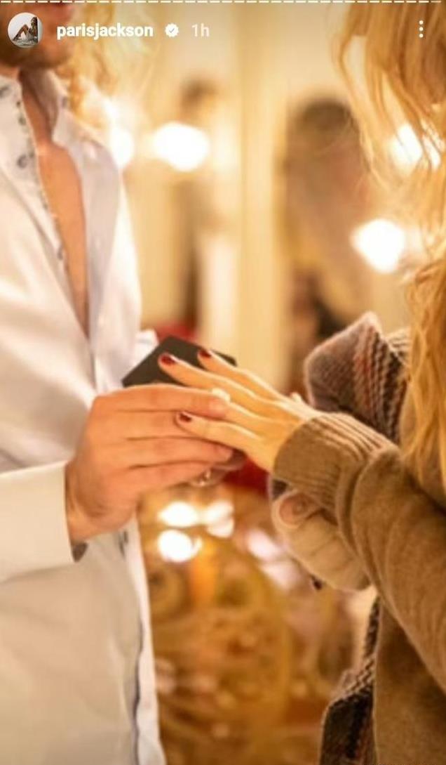 大概12月7日左右(有时差),杰克逊的女儿帕丽斯·杰克逊在个人社交平台上官宣自己订婚的消息,并晒出男友单膝下跪,手拿戒指盒求婚的照片。