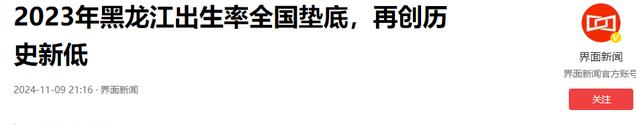 【1】界面新闻官方账号《2023年黑龙江出生率全国垫底,再创历史新低》