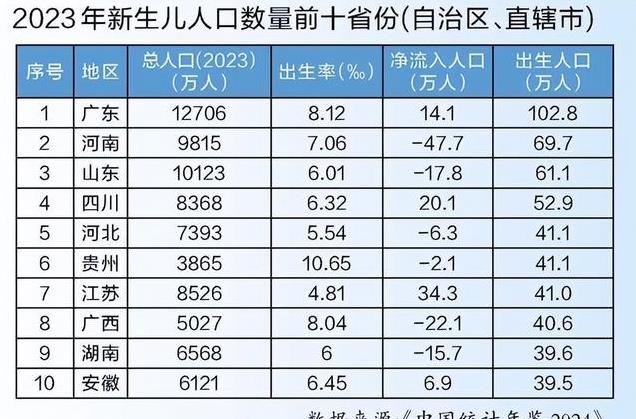 在2023年一年的时间里,广东省就有103万的新生儿,是唯一一个超过百万新生儿的省份,就连河南这个人口大省,在2023年也只有69万的新生儿。