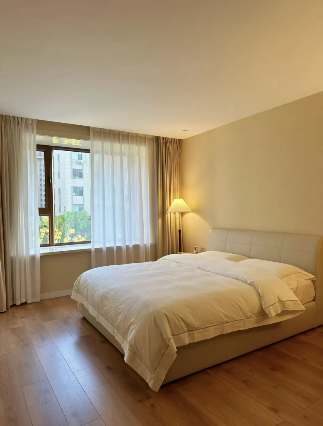 在卧室中选用柔和的色调和舒适的床品,打造一个宁静温馨的睡眠空间。