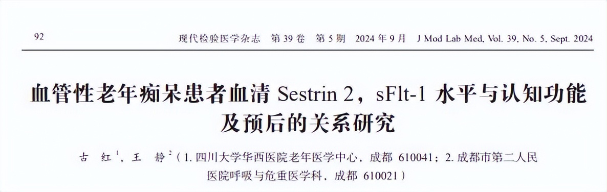 参考资料:[1]古 红,血管性老年痴呆患者血清 Sestrin 2,sFlt-1 水平与认知功能 及预后的关系研究,现代检验医学杂志,2024-09-15