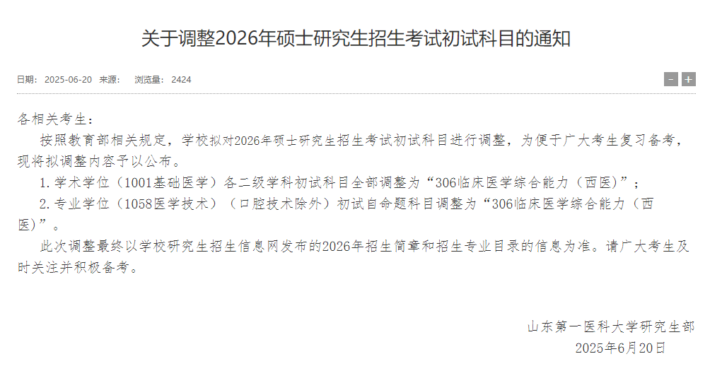 又有学校公布了研究生初试科目调整公告!可以看出统考已经成为了26考研的趋势,来看看是哪些学校吧!