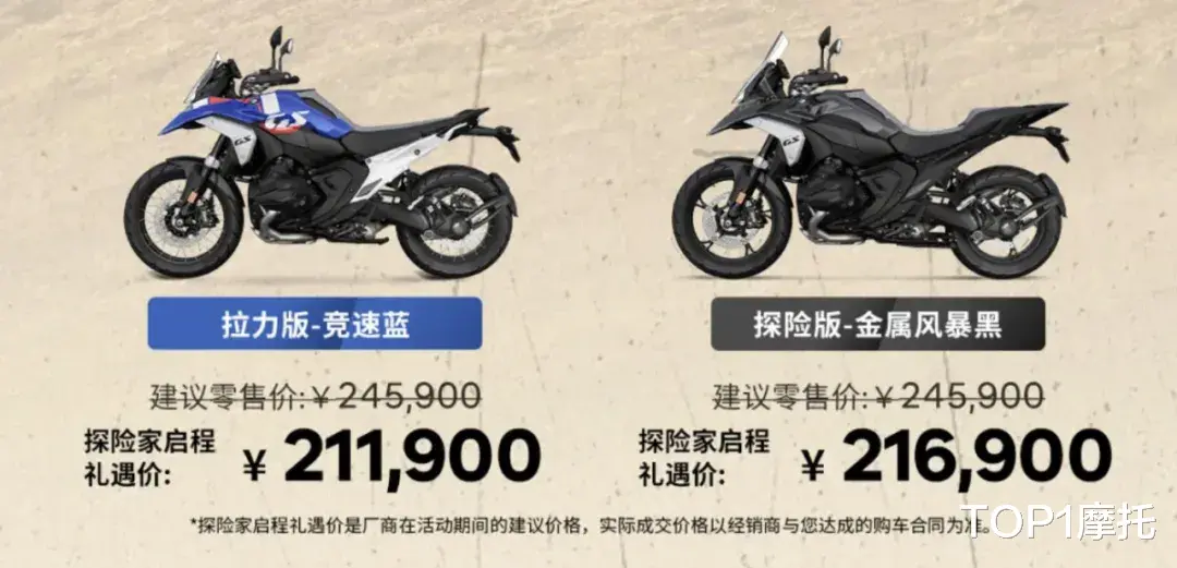 同样,曾经需要加价排队等车的新一代“水鸟”R1300GS,也在此次降价之列,拉力版-竞速蓝原245,900元的价格,现在只需要211,900元,降幅达到了3.4万元;探险版-金属风暴黑原245,900元的价格,现在只需要216,900元,降幅达到了2.9万元。要知道R1300GS这种新旗舰才上市没多久,这就开始降价了级基本可以证明,市场销量远不及预期,经销商的库存压力大。宝马F900GS系列