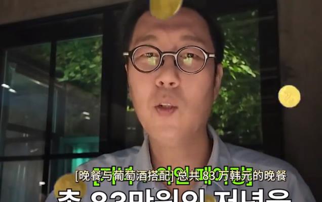 点了几道菜之后,他又点了一瓶34万韩元的葡萄酒,这顿晚餐总共加起来83万韩元,不过对于金荣澈来说,他并不在乎。