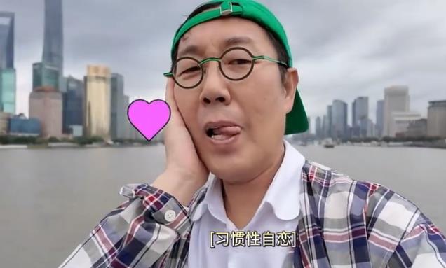 在戴绿帽子的时候他还用小眼神瞥了瞥周围,发现确实没人看到他,才将帽子戴在了头顶,随后用手捧着脸,一脸陶醉的和东方明珠合照。