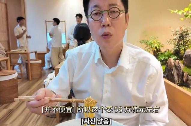 第二天他果断来到了一家蟹黄拌饭店,在这里点了一碗蟹黄面条,这一碗面条可以称作是“面条界的爱马仕”了,这么一点就需要56万韩元,好在味道他是十分满意的。