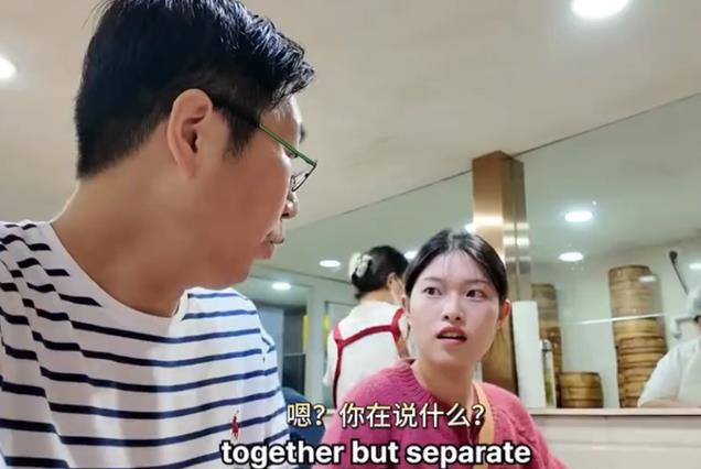 看到拼桌顾客的那一刻,金荣澈还用韩语和对面打了声招呼,这可把小姐姐吓一跳,根本听不懂他在说什么,只能尴尬的回答一句:“Yes!”