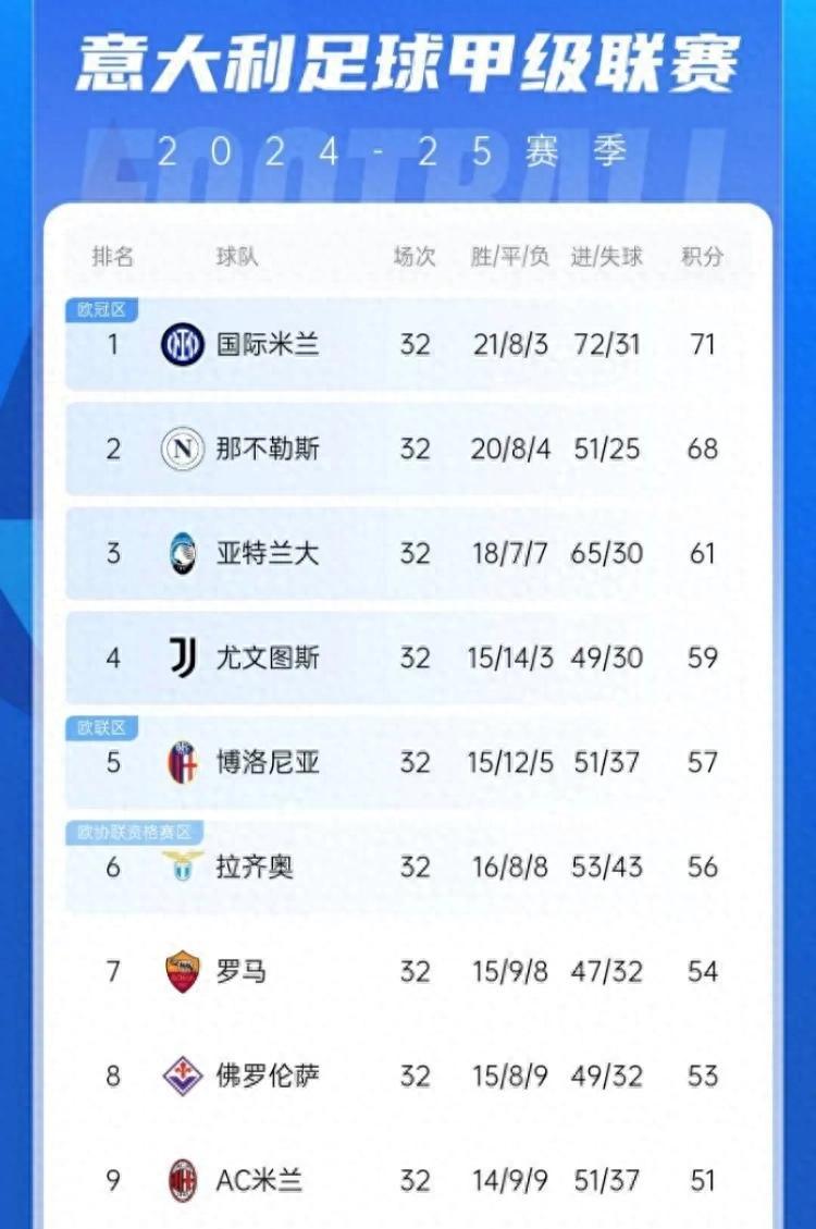 博洛尼亚、罗马和拉齐奥更是为了欧冠资格展开激烈争夺,国米想要轻松取胜并非易事。