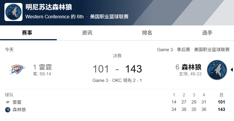 北京时间5月25日,森林狼主场143-101狂胜雷霆的史诗级胜利,不仅将西部决赛大比分扳成1-2,更创造了NBA历史季后赛第8大分差纪录。这场42分屠戮背后,隐藏着年轻王朝更迭的密码——22岁的爱德华兹用三节30分9篮板6助攻的统治级表现,将森林狼战术体系提升至全新维度。