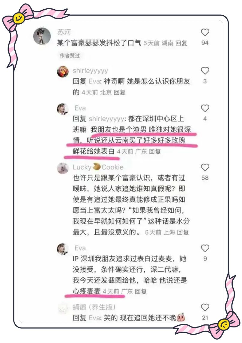 追求过麦琳的富二代有消息了!当年他对麦琳情有独钟!还买好多玫瑰花向她表白!看节目后他说心疼麦琳!但富二代被曝是渣男!可想而知,麦琳她所幻想的幸福的富太太生活,不过就是一直活在她心中的美梦罢了!