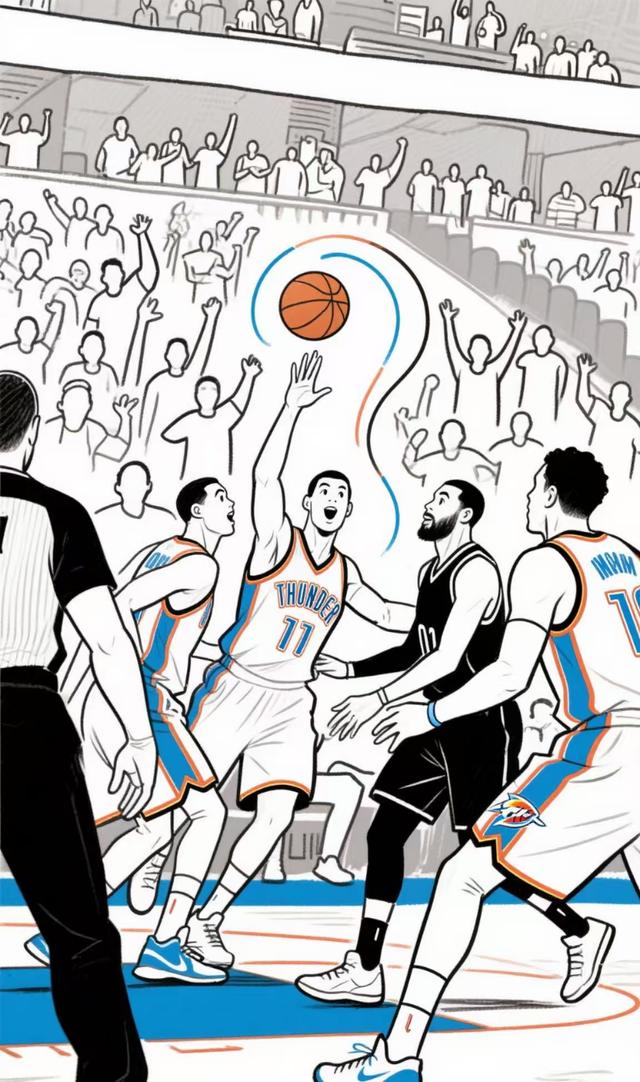 到了比赛的关键时刻,气氛已经被烘托到了极致。全场观众的目光都聚焦在球场上,心跳随着球的跳动而起伏。雷霆队的球员者们肩负着全队的希望,他们冷静而果断地处理着每一个球。无论是在篮板下的激烈拼抢,还是在三分线外的果断出手,他们都展现出了极高的竞技水平。而掘金队则在雷霆队的猛烈攻势下,开始出现了慌乱,曾经的优势荡然无存。
