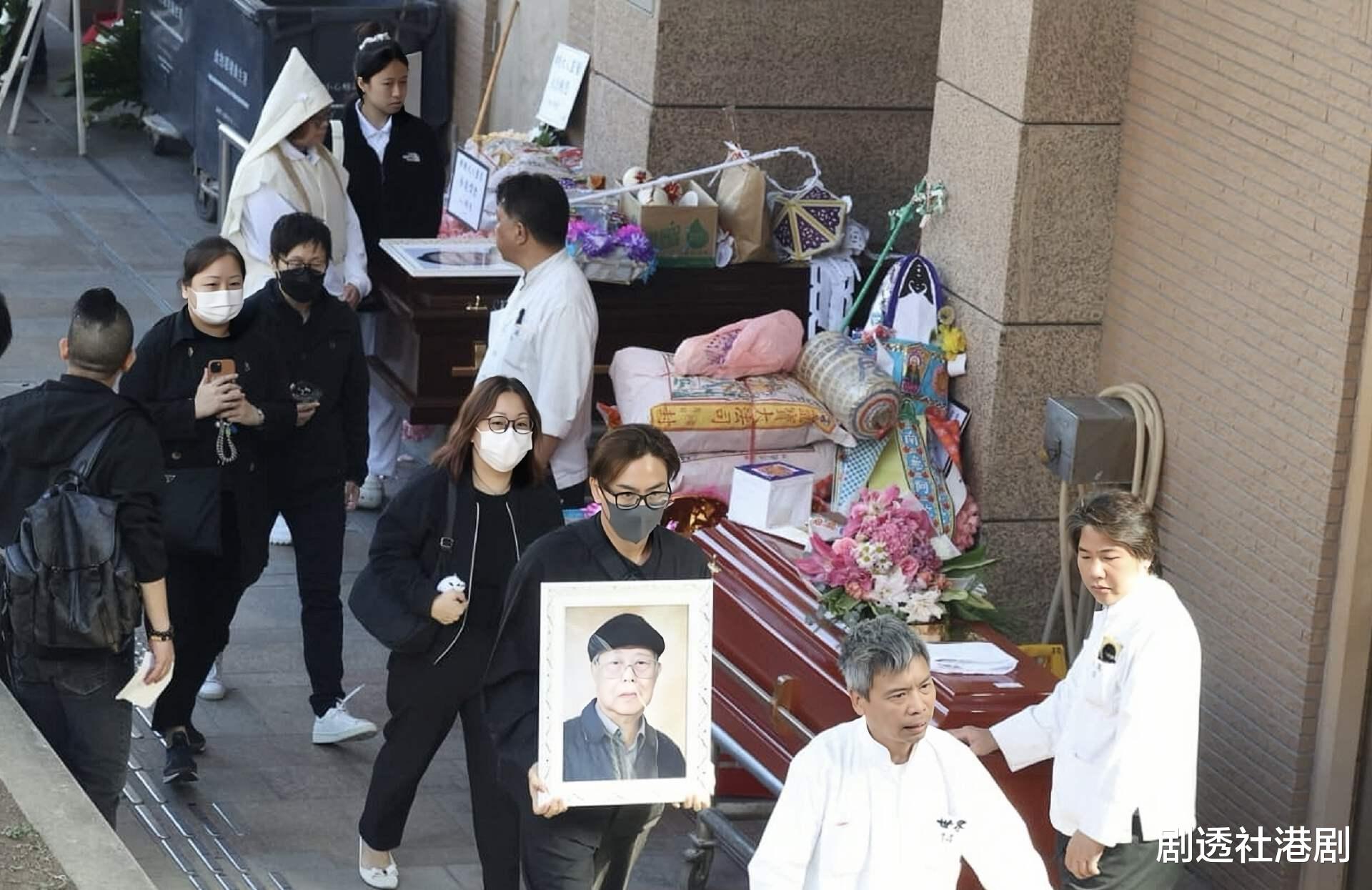 从港媒曝光的照片可以看到,马国明捧着父亲的遗照,登上灵车,前往火葬场火化父亲的遗体。