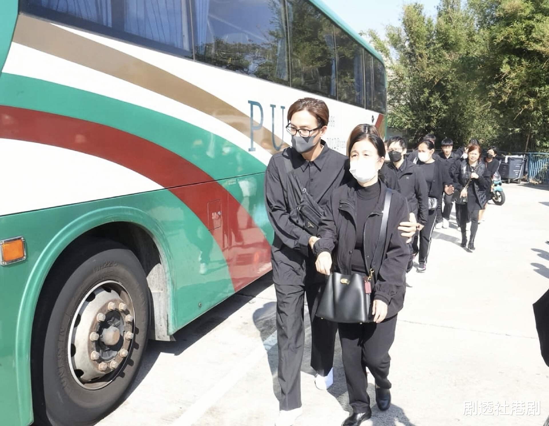 到了火葬场之后,马国明的母亲、妻子汤洛雯均有现身。一家人都身穿素色衣服,满脸的哀伤。