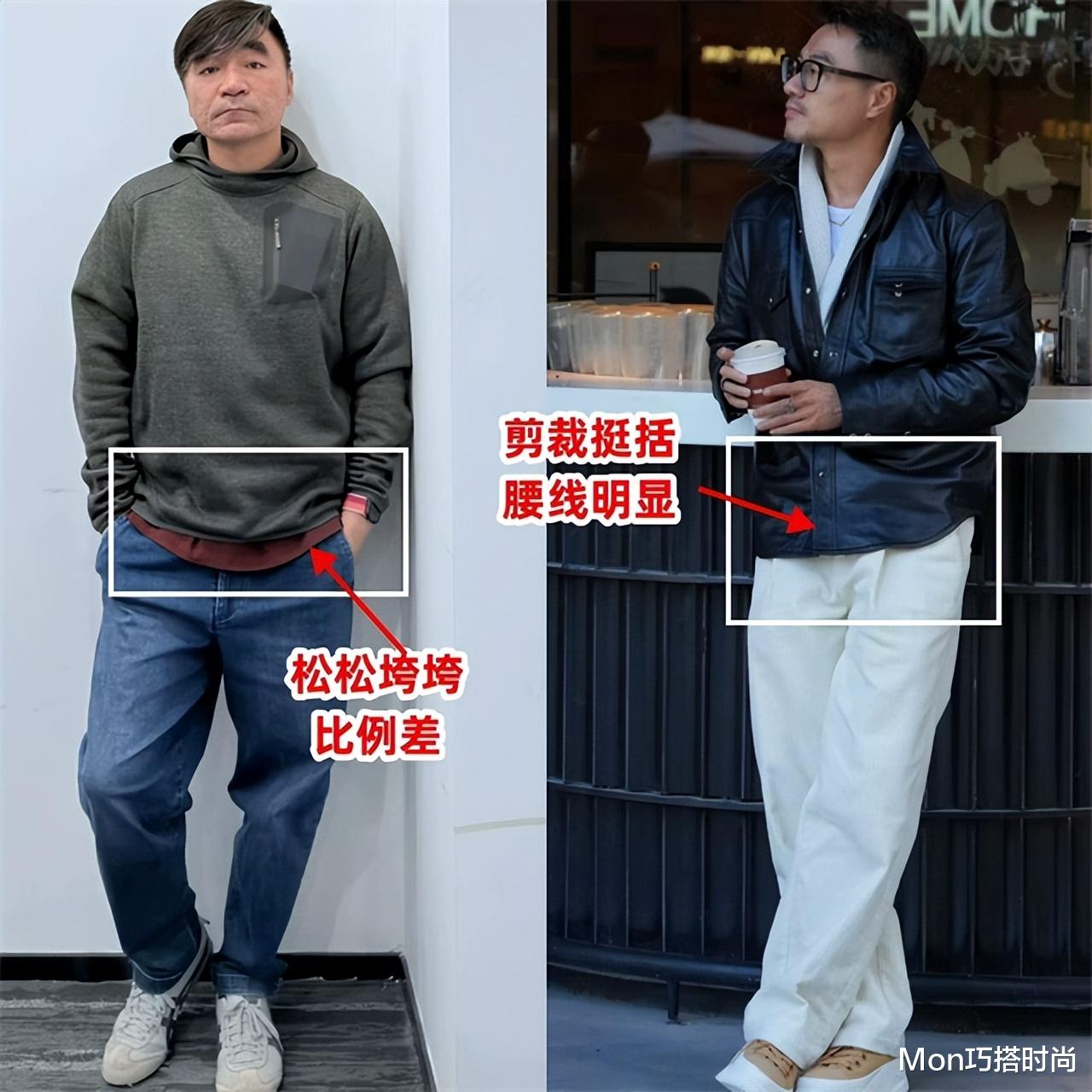 大部分中年男人穿衣服都容易陷入一个误区,那就是穿松松垮垮的衣服,认为这样穿舒服,可结果却被松垮的衣服拉低了比例,甚至显得特别邋遢。