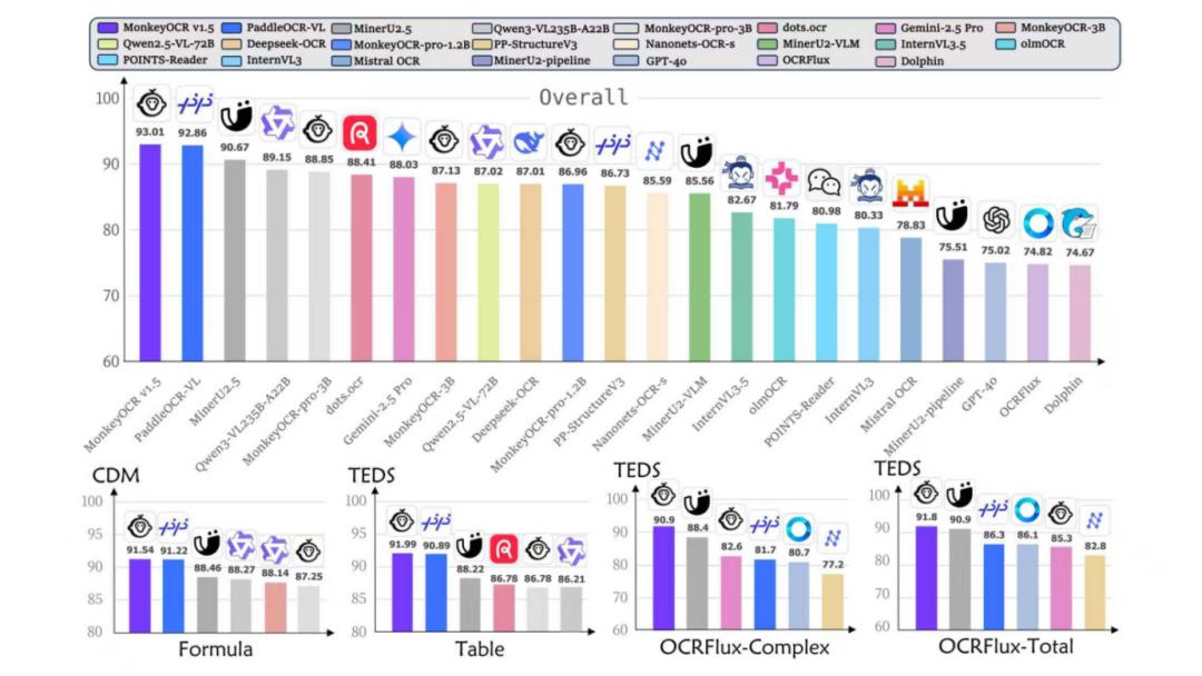 据悉,MonkeyOCR在国际权威文档解析榜单OmniDocBench V1.5中,全球第一。