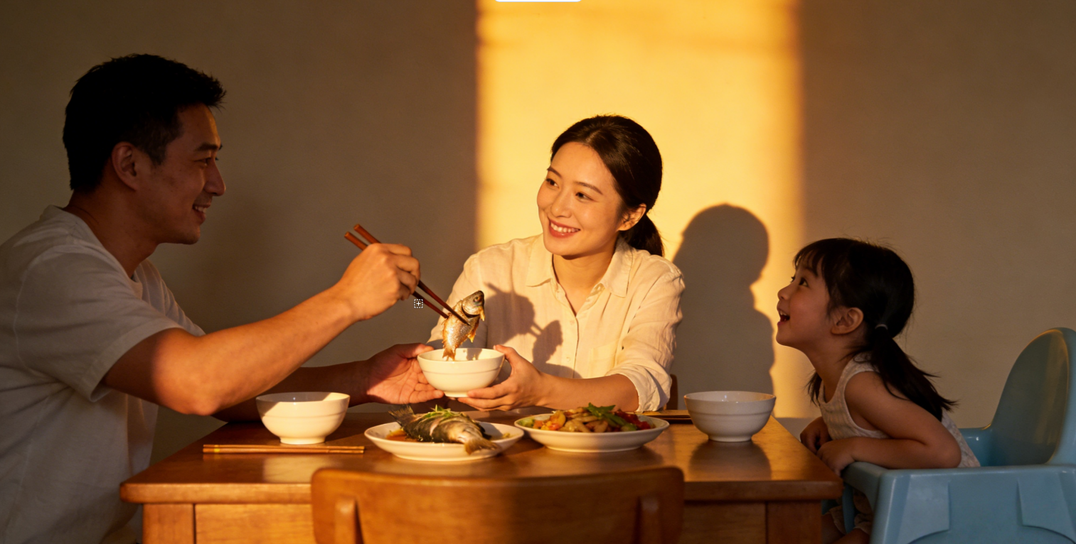 晚饭时,陈志默默挑掉鱼刺把鱼肉夹到她碗里——这个动作他做了十年。女儿叽叽喳喳说着幼儿园的趣事,夕阳把半个餐桌染成暖黄色。