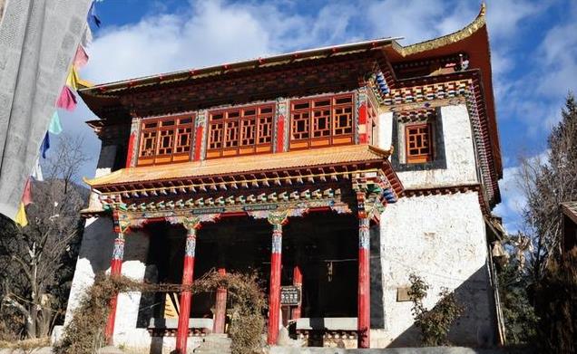 据说该寺是由宁玛派高僧桑杰林巴兴建的,湖心岛古木参天,曲径通幽。