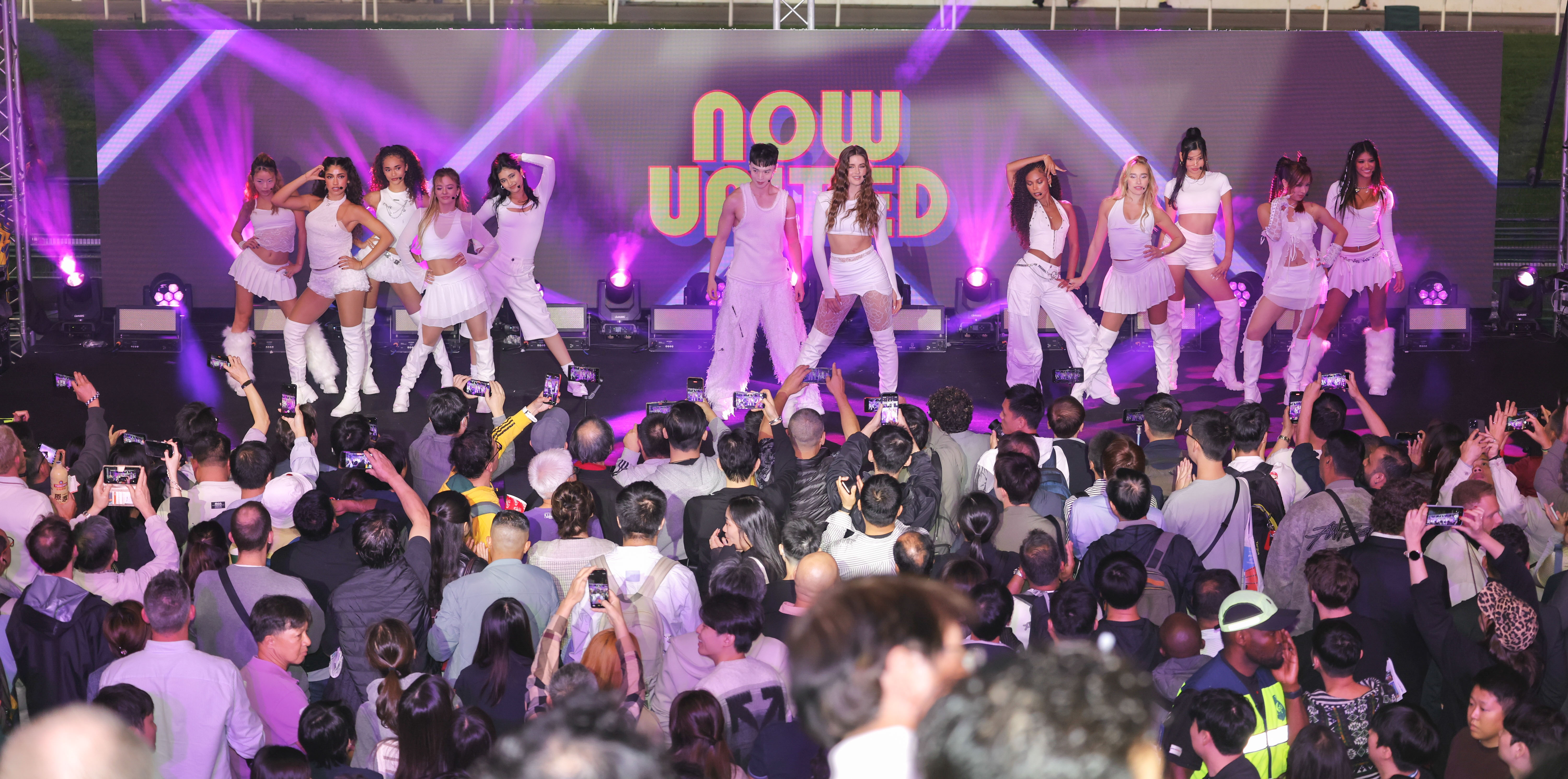 前晚(12月10日),Now United再次登上跑马地马场的舞台为「浪琴国际骑师锦标赛」担任表演嘉宾。15位成员,包括代表中国香港的曾家莹、北京的王南钧及澳洲的Savannah Clarke等,齐聚香港,在赛事间带来多首充满动感活力的代表作,包括《Now or Never》、《Giddy Up》、《Golden》、《Parana》及《One Love》等,为现场观众带来劲歌热舞。