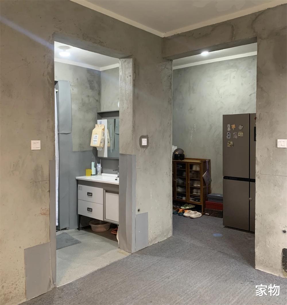 最近,我就发现了一对四川夫妻(@斯室陋室)的家,完全保留了毛坯房的状态,屋内两室一厅还是横厅户型,两人入住3年时间,也只置办了基础家具,其余空间都未做装修,连墙都没刷。