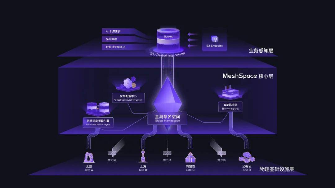 这种架构精准击中了 MiniMax 等混合云用户的痛点。由于采用了混合云架构,数据孤岛带来的跨域调度成本曾是其核心挑战。MeshSpace 几乎是为其量身定制的解决方案,通过统一的全局命名空间收敛数据入口,业务端不再需要感知数据的真实物理位置,从而彻底解决了数据迁移带来的低效问题,极大降低了管理成本。