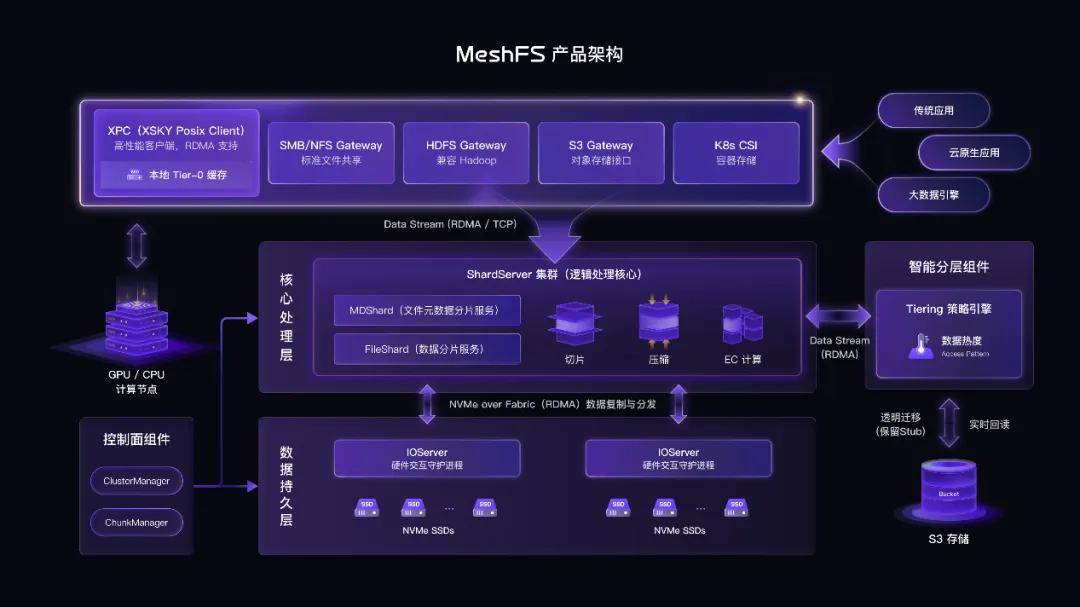面对 AI 训练中严峻的「IO 墙」挑战,XSKY 发布了专为 AI 训练而生的并行文件系统 MeshFS。