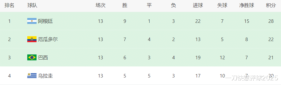 前面13轮过后,阿根廷队9胜1平3负,积28分,超出第二名厄瓜多尔6分,领跑小组积分榜,世预赛出线可谓是指日可待。而对手巴西队则表现一般,前面13轮过后,仅仅取得6胜3平4负积21分的战绩,整整被阿根廷甩开了7分的差距,排在小组第3位。